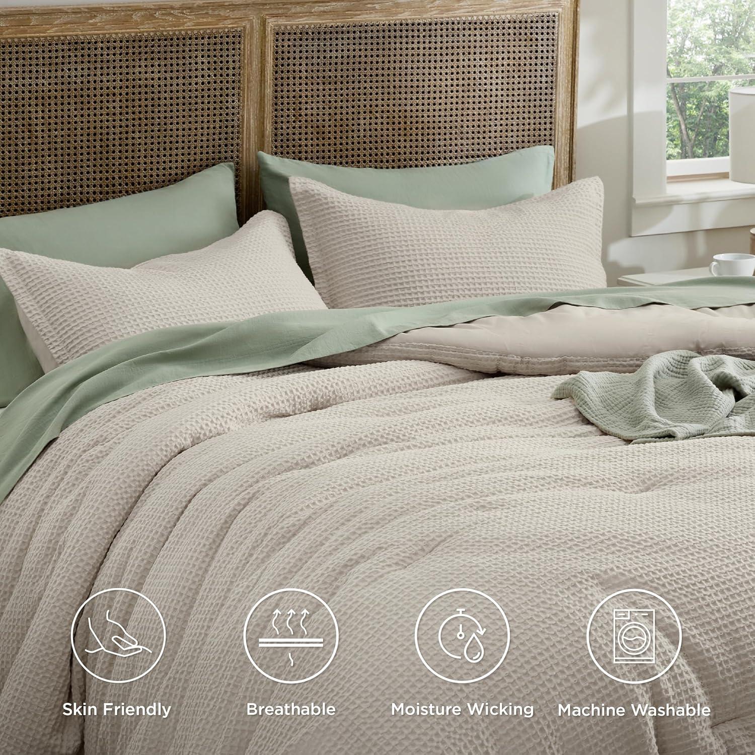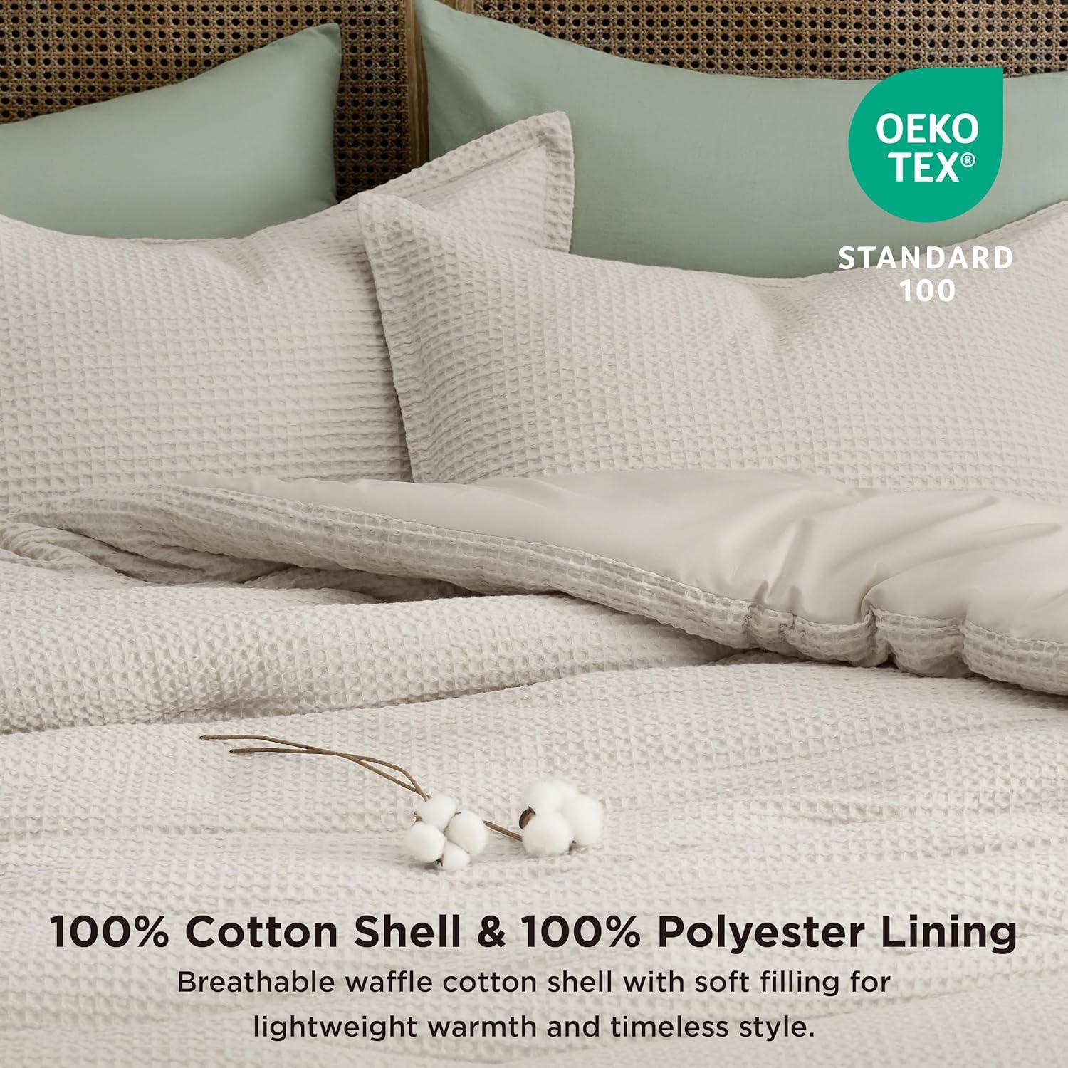 imageBedsure Waffle Comforter Set King Beige Soft Bedding Waffle Weave Bed Set 3 Pieces 1 Comforter 104quotx90quot and 2 Pillow Shams Cotton Shell and Polyester Lining for All Seasons08  Linen