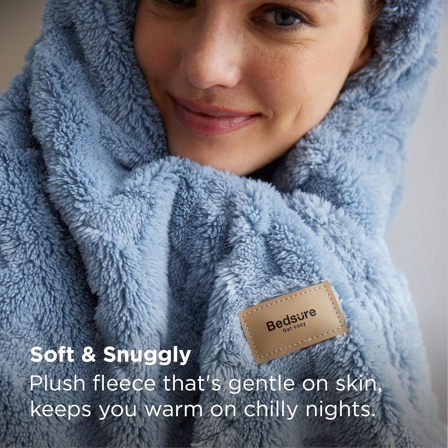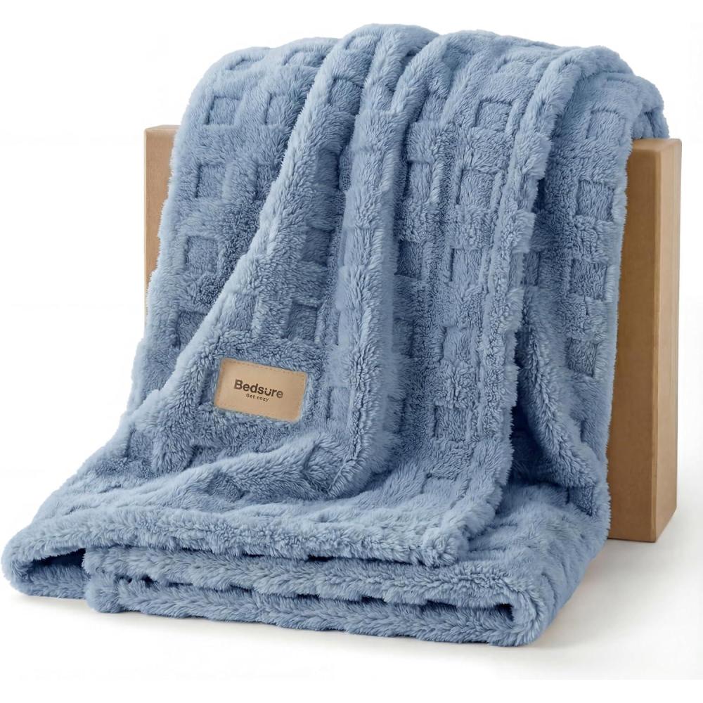 Bedsure Waffle Couch Throw Blanket – GentleSoft Fleece Cozy Blanket for Sofa Bed Room Decor, Super Fluffy Checkered Throw for Women Girls, Warm Cute All Season Gift, Tan, 50×60 Inches(Ashley Blue)