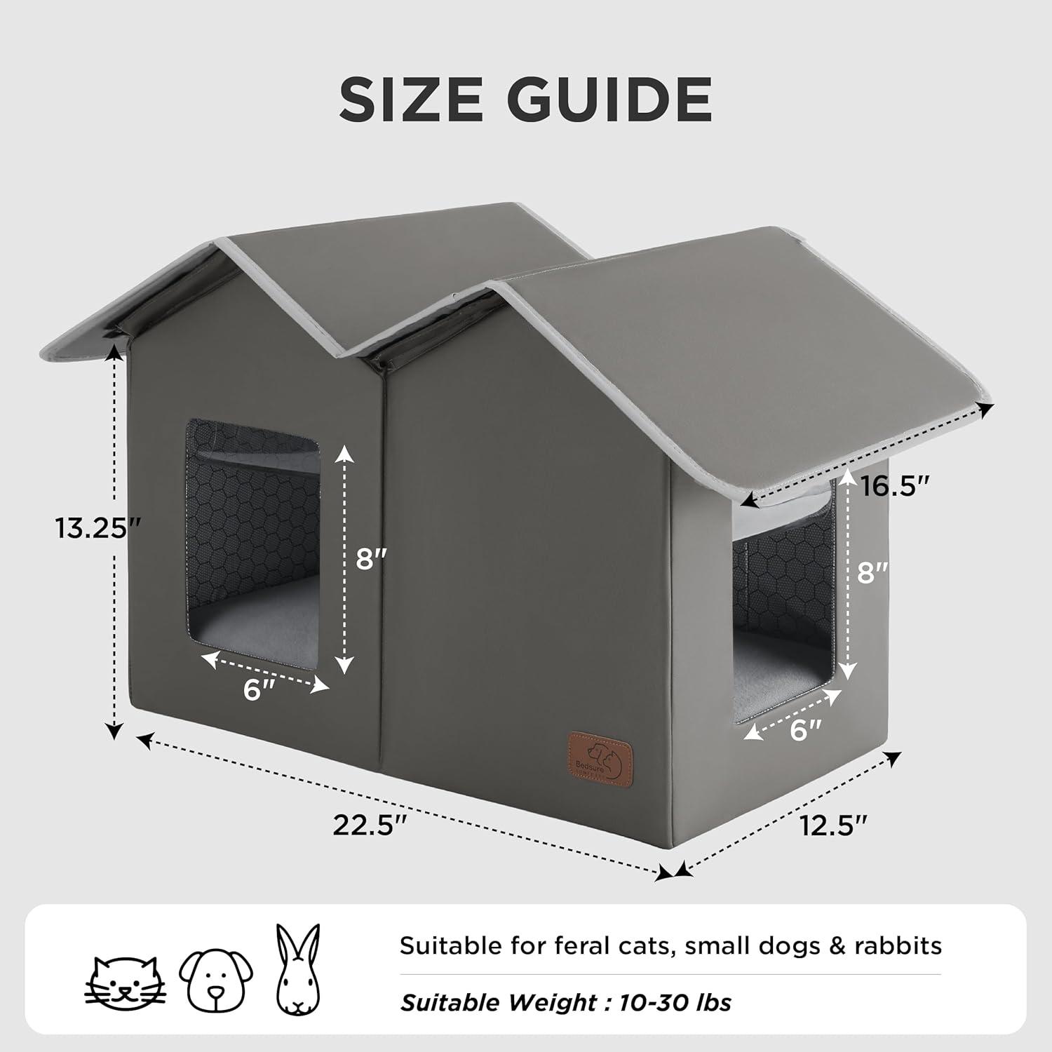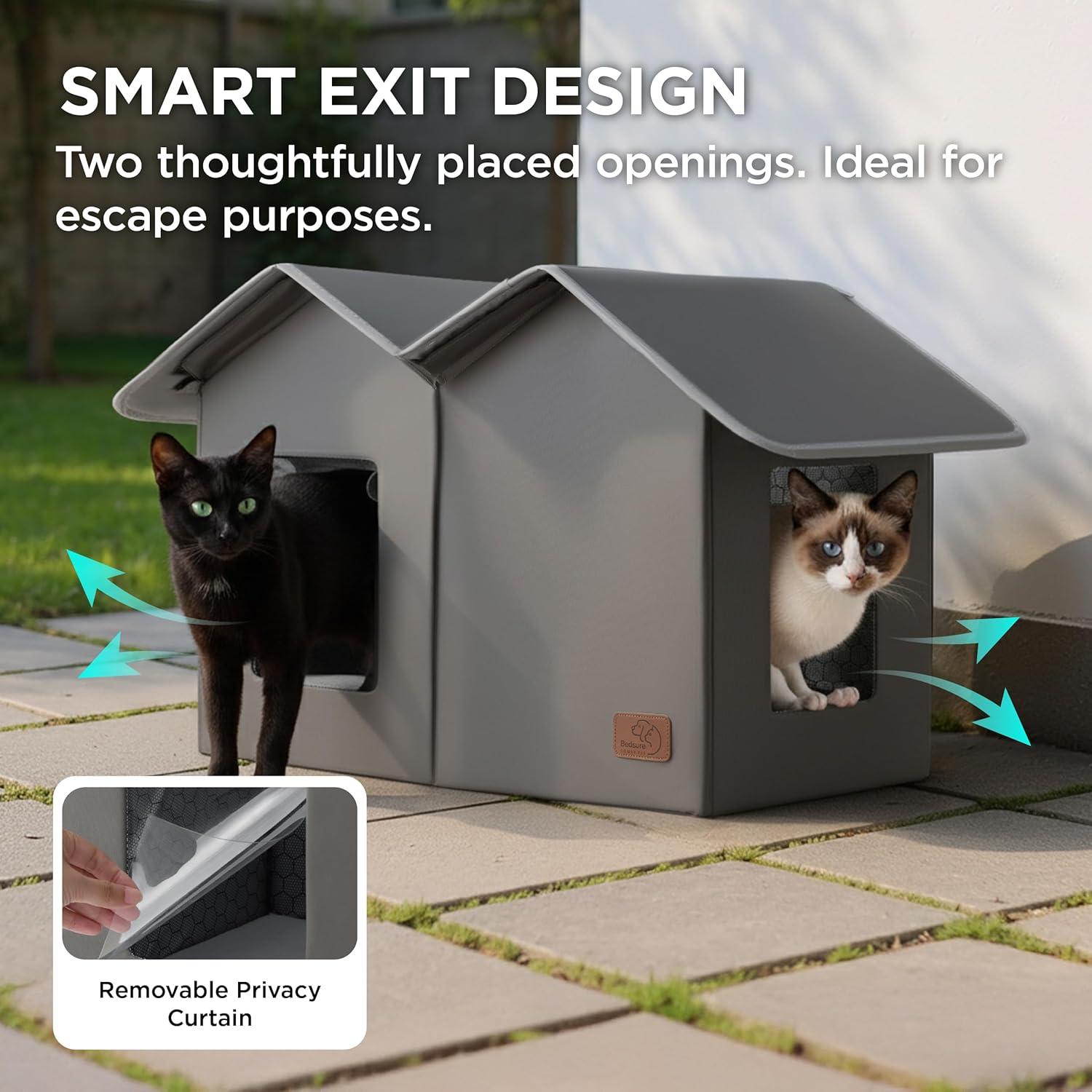 Rainproof: Constructed with waterproof membrane fabric on exterior walls, this outdoor cat house weatherproof design keeps rain out completely