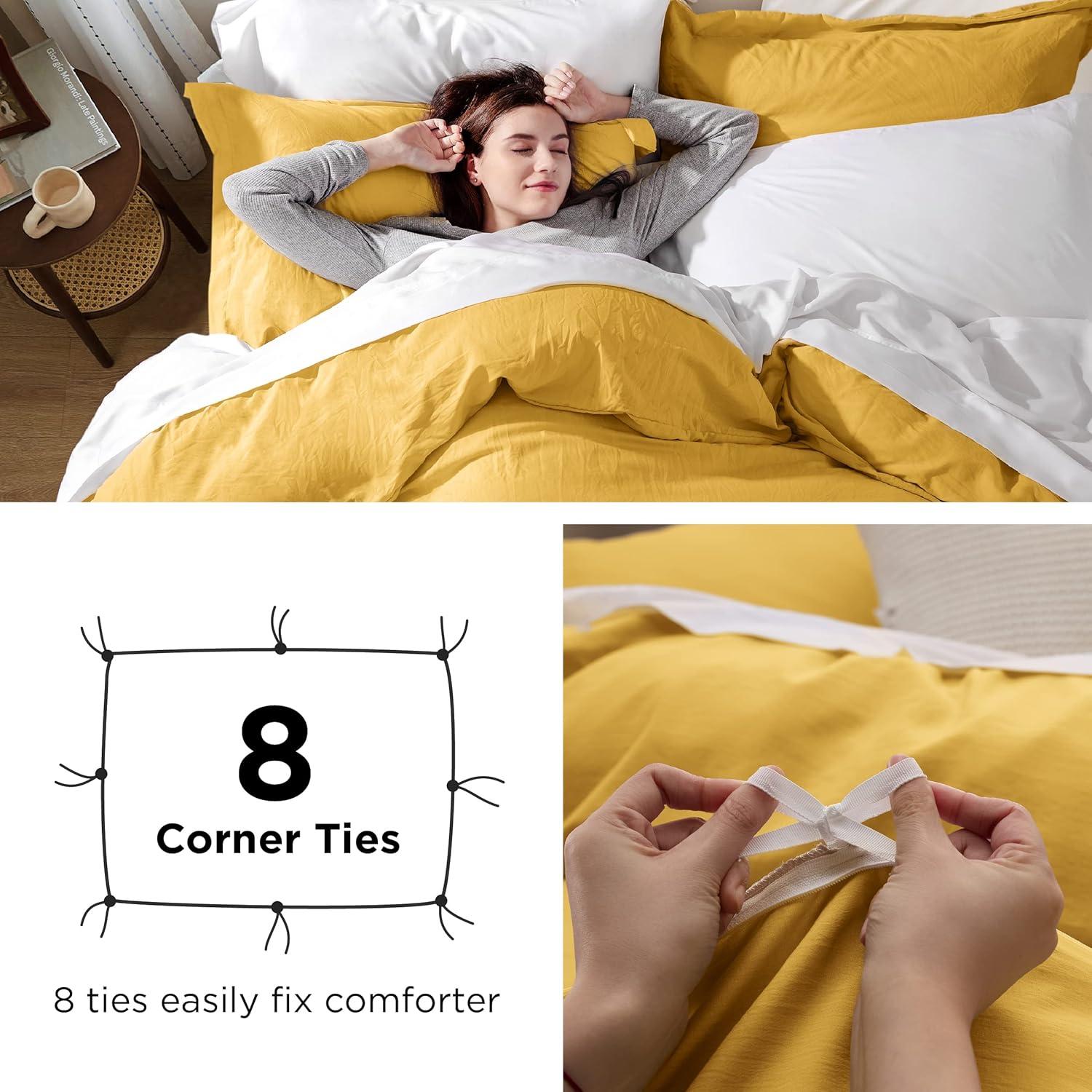 Bedsure White Duvet Cover Full Size – 3 Pieces Prewashed Extra Soft Cotton-Like Polyester Bedding Set, Includes 1 Duvet Cover 80×90 Inches with Zipper Closure & 2 Pillow Shams, Comforter Not Included(08 – Mustard Yellow (No Comforter))