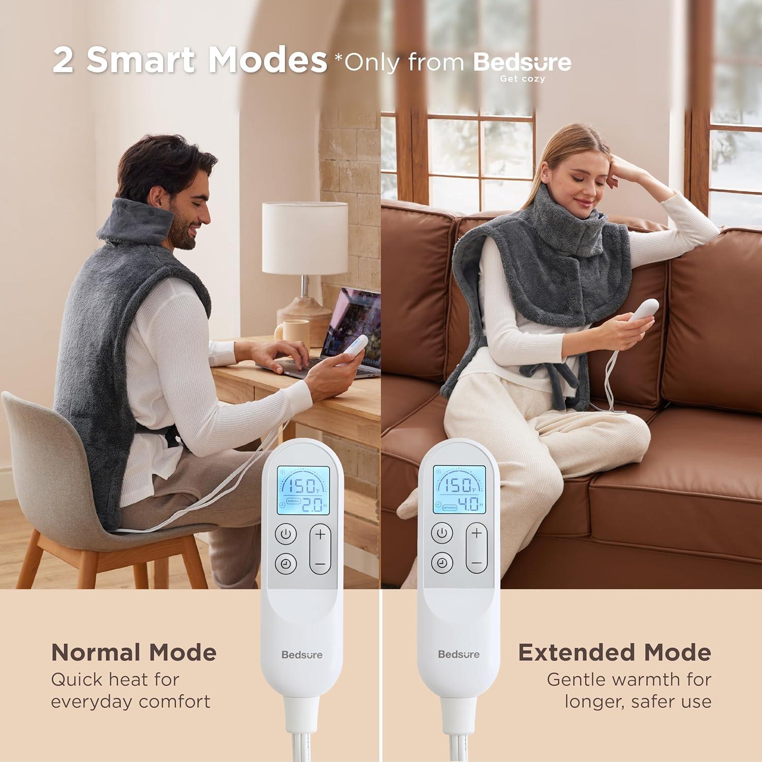 Bedsure Wrap Heating Pad for Neck and Shoulders and Back – Birthday Gifts for Men Women, Electric Heated Pad for Full Body, Fast Heating Extra Large 24″x38″, ETL Certified, Grey(01 – Grey)
