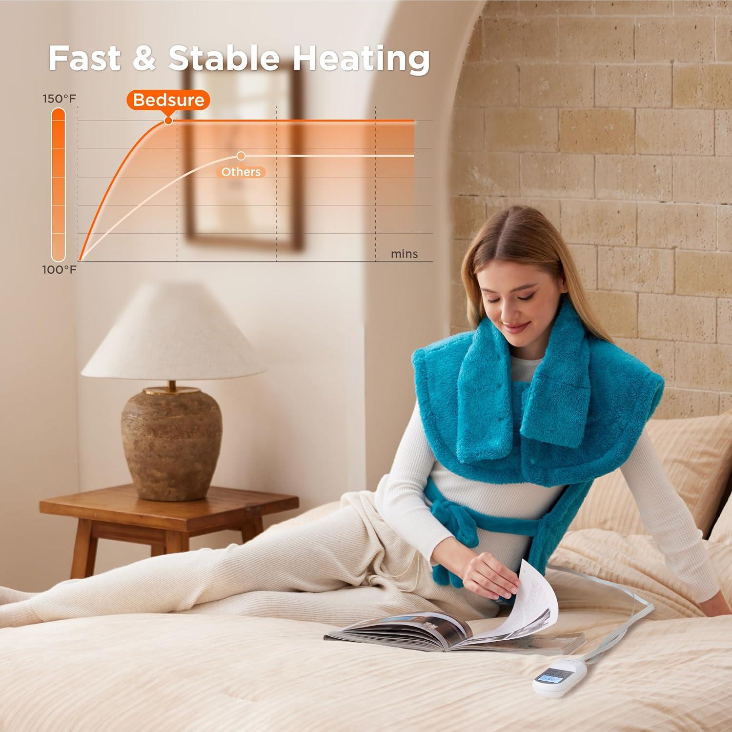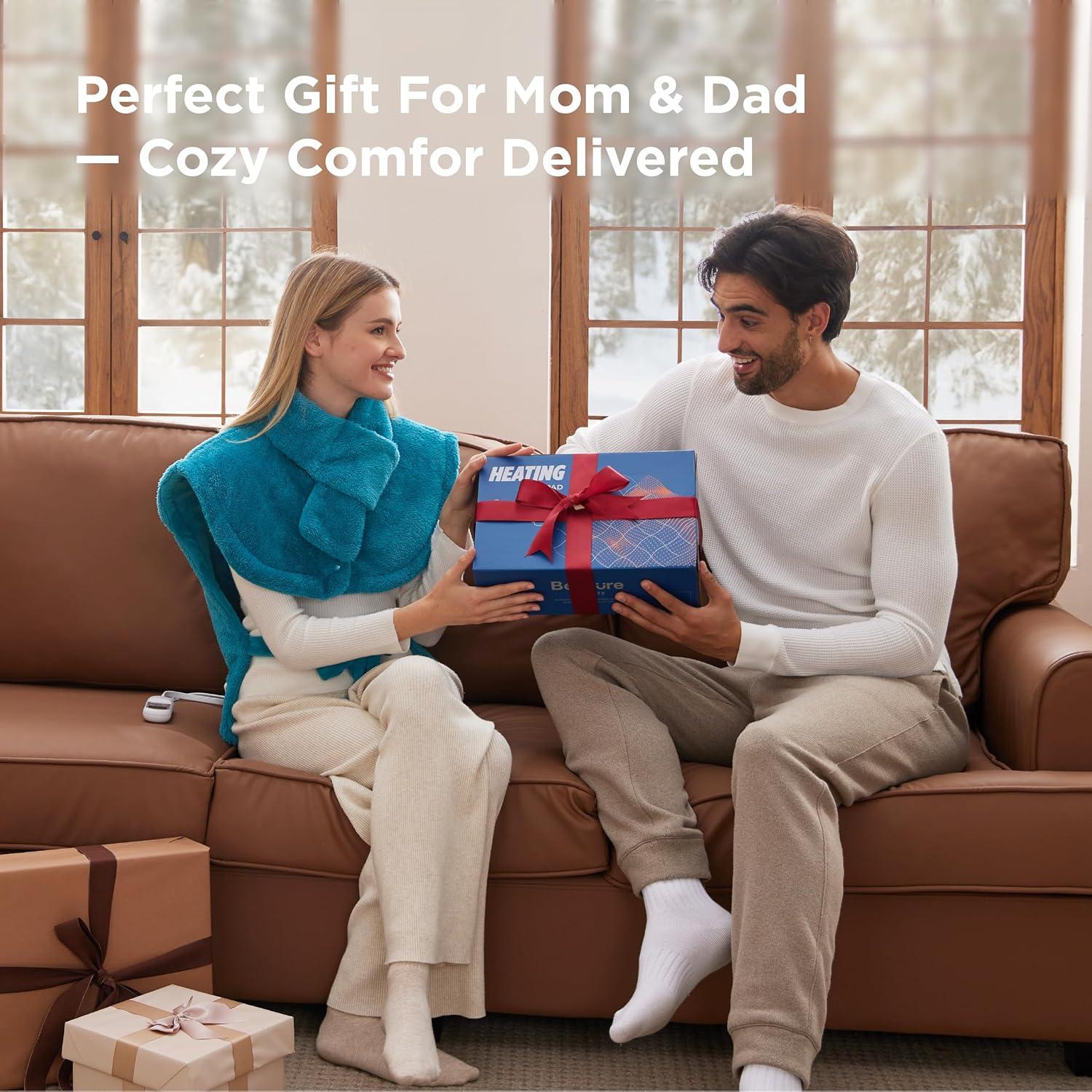 Bedsure Wrap Heating Pad for Neck and Shoulders and Back – Birthday Gifts for Men Women, Electric Heated Pad for Full Body, Fast Heating Extra Large 24″x38″, ETL Certified, Grey(01 – Blue)