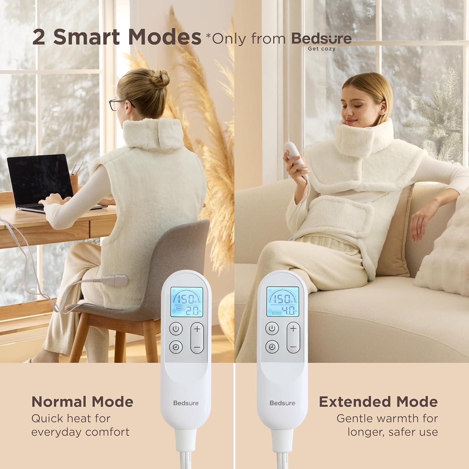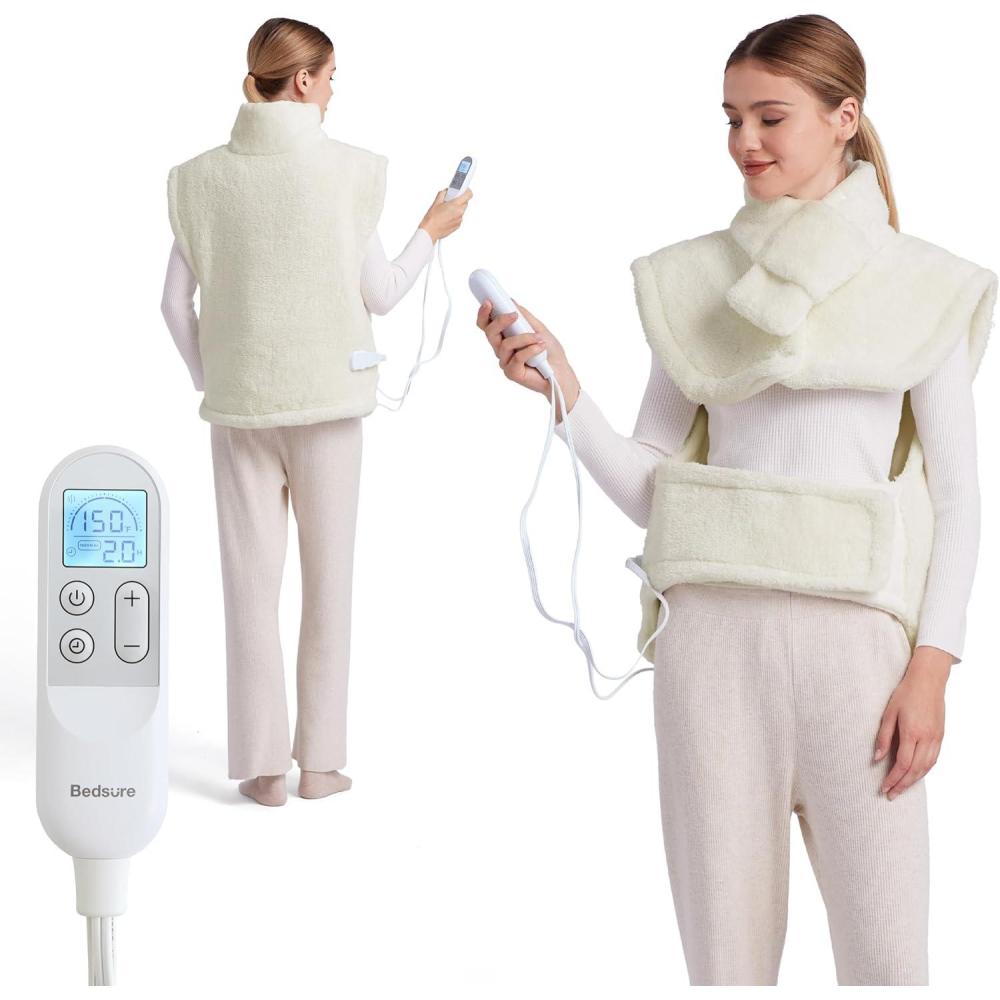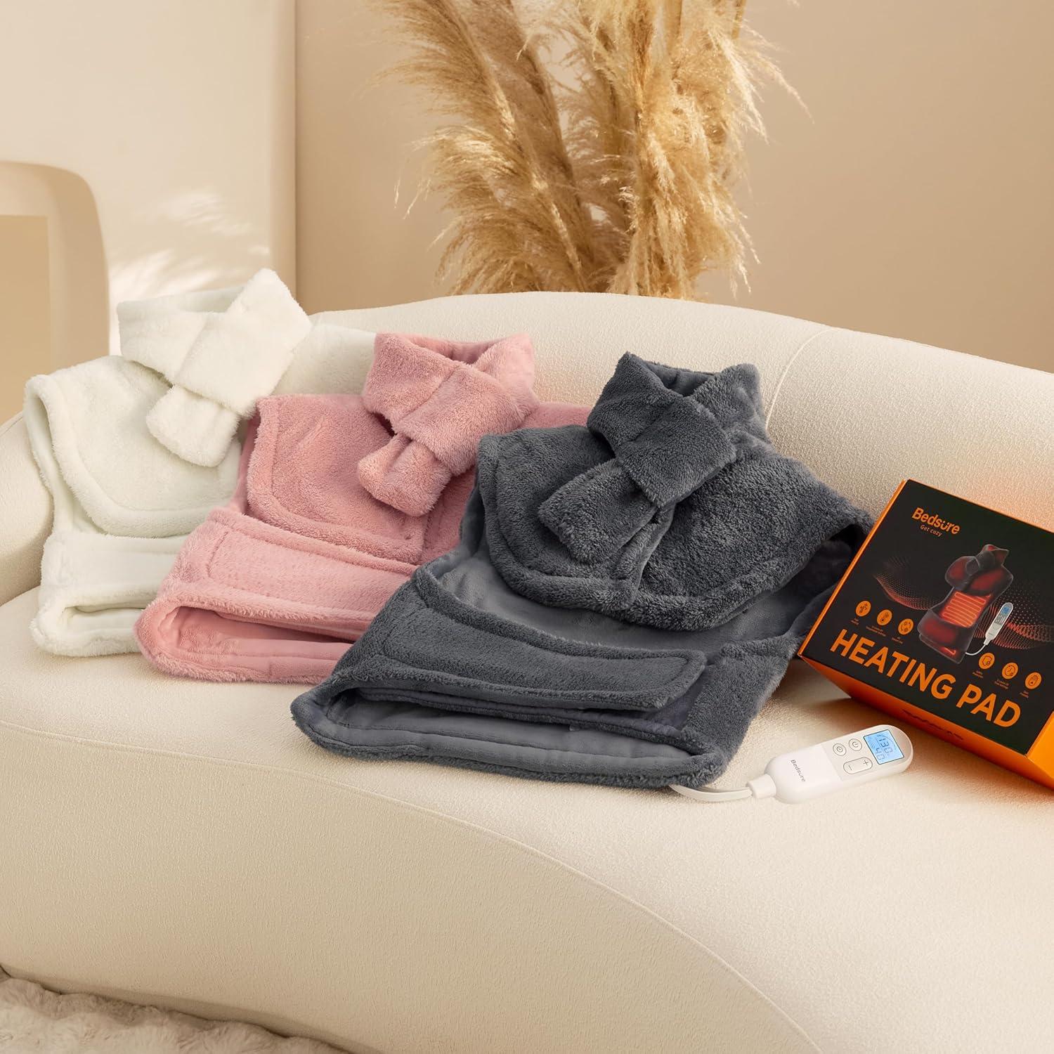 Bedsure Wrap Heating Pad for Neck and Shoulders and Back – Birthday Gifts for Men Women, Electric Heated Pad for Full Body, Fast Heating Extra Large 24″x38″, ETL Certified, Grey(02 – Cream)
